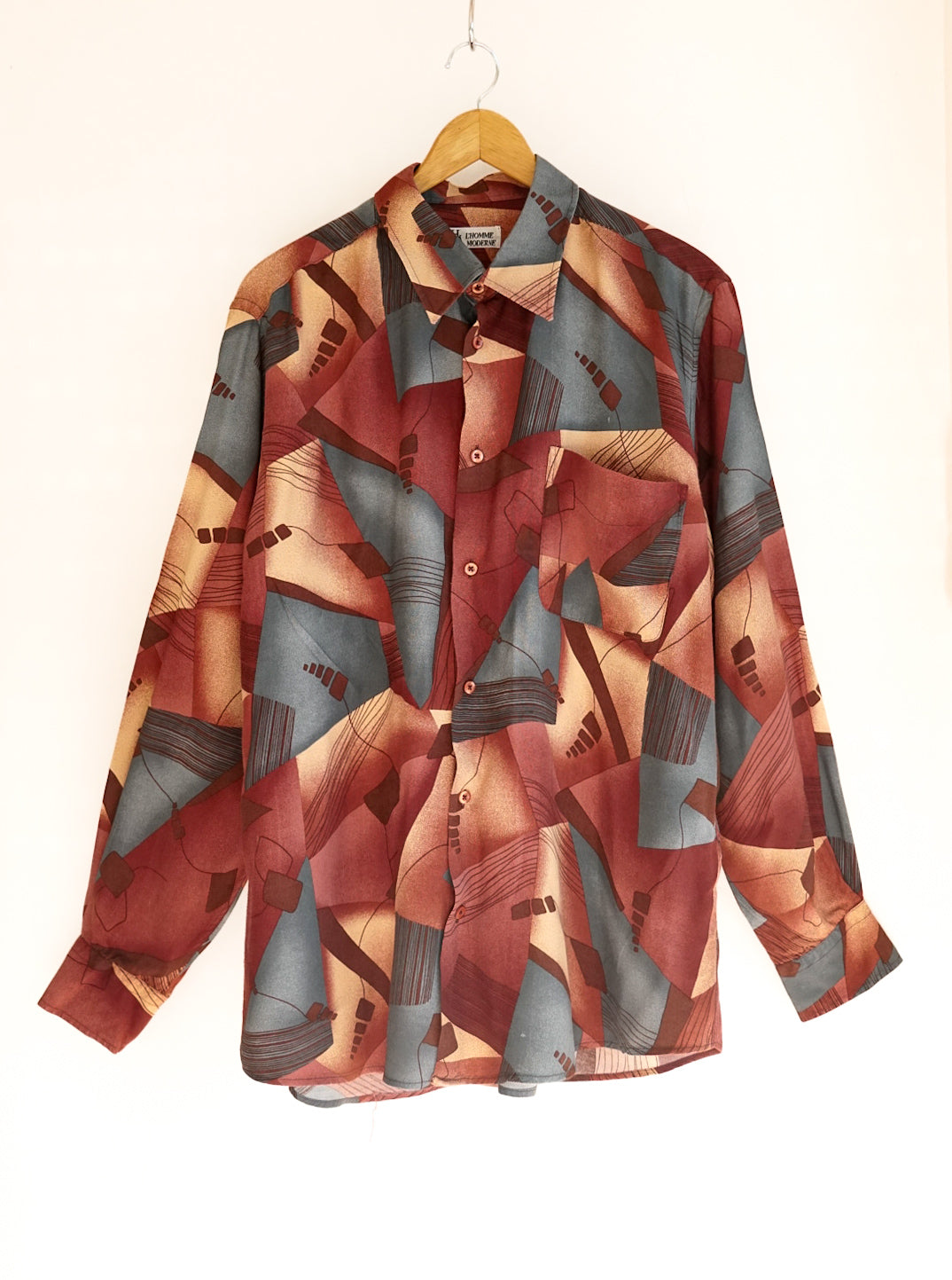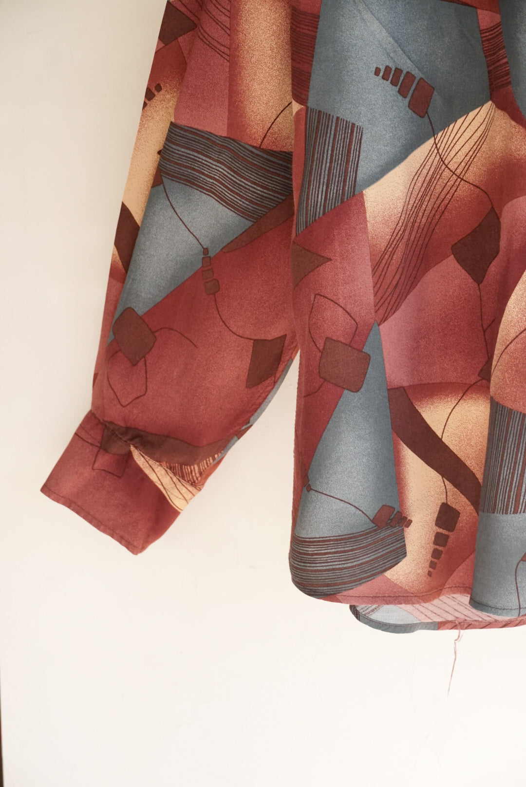 Chemise à manches longues à motif abstrait géométrique, tissu fluide, années 80, oversize