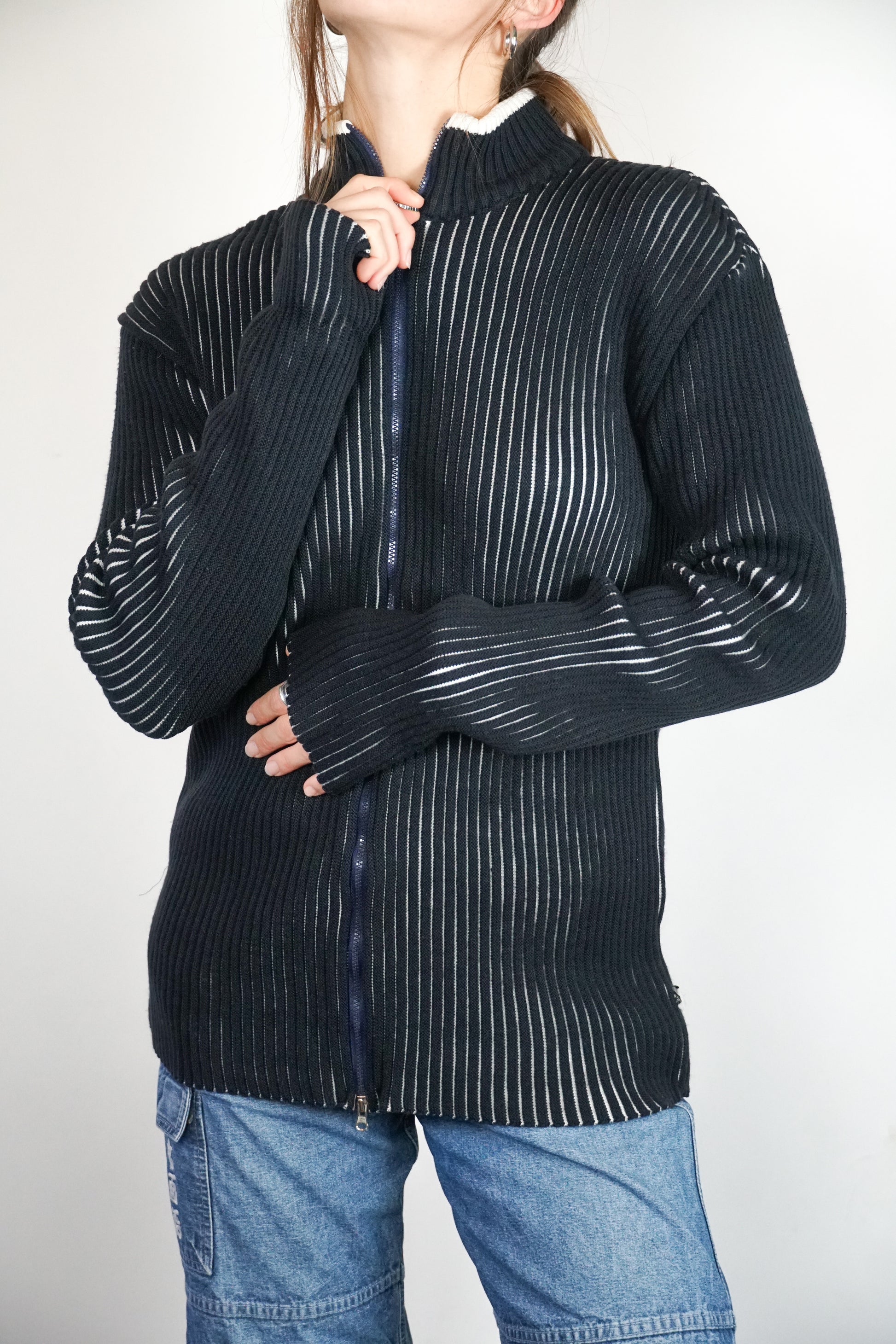 Gilet côtelé noir et blanc, de la marque Armani