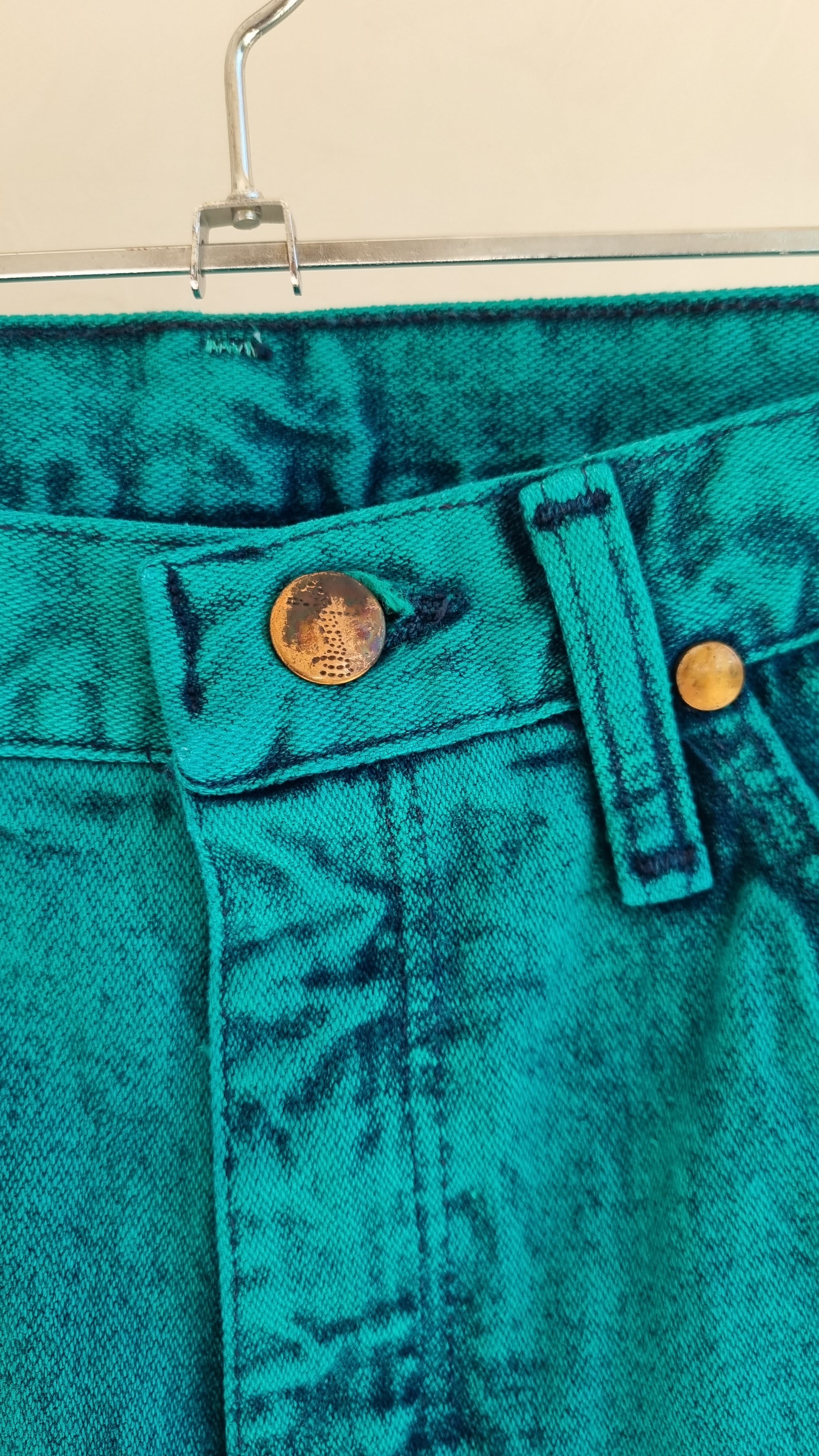 Jean vert moucheté Wrangler neuf issu d'un dead stock des années 90, cowboy cut, taille haute, toile brut en coton, fabriqué aux Etats-Unis