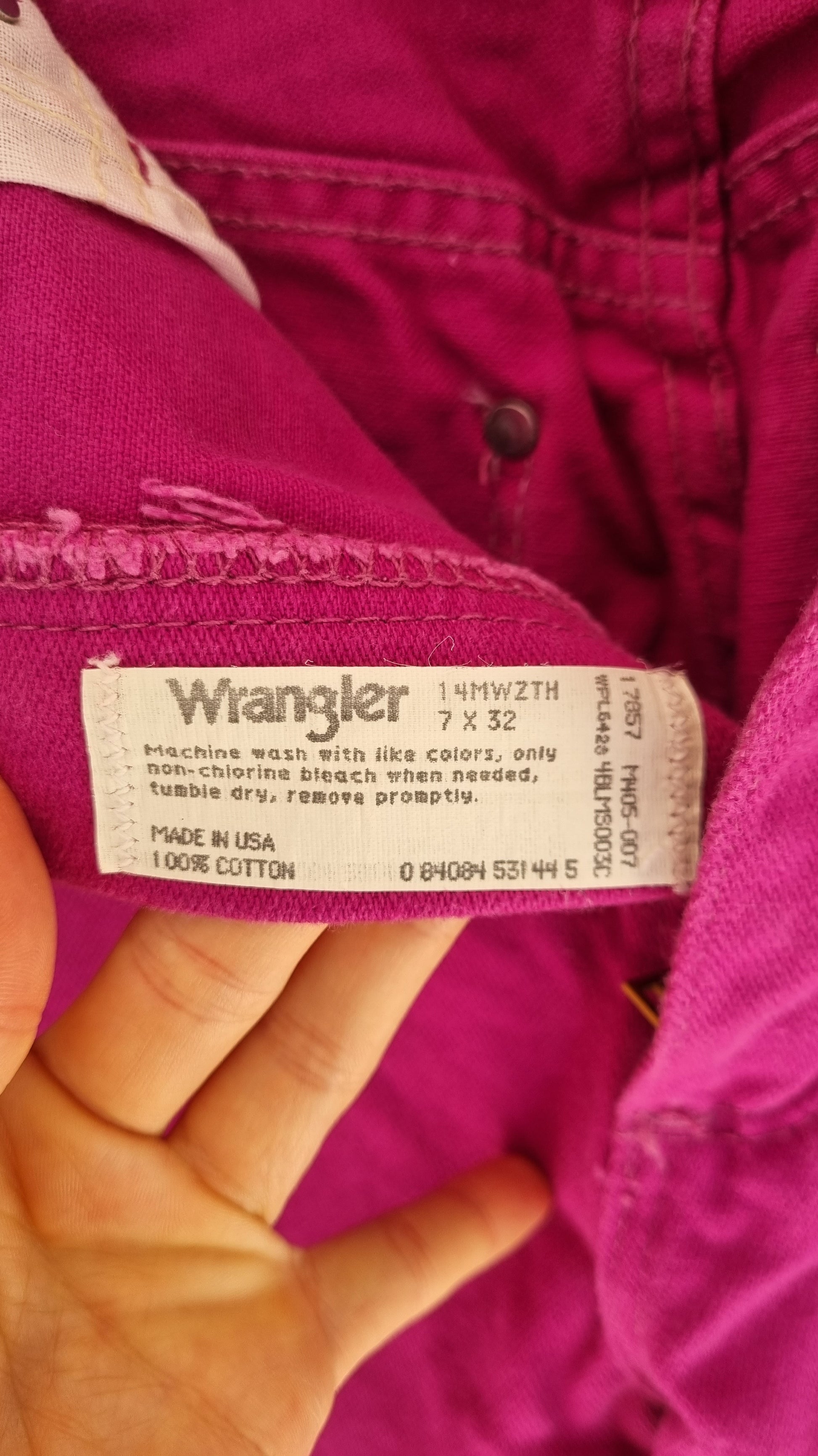 Jean fuschia Wrangler neuf issu d'un dead stock, cowboy cut, taille haute, toile brut en coton, fabriqué aux Etats-Unis