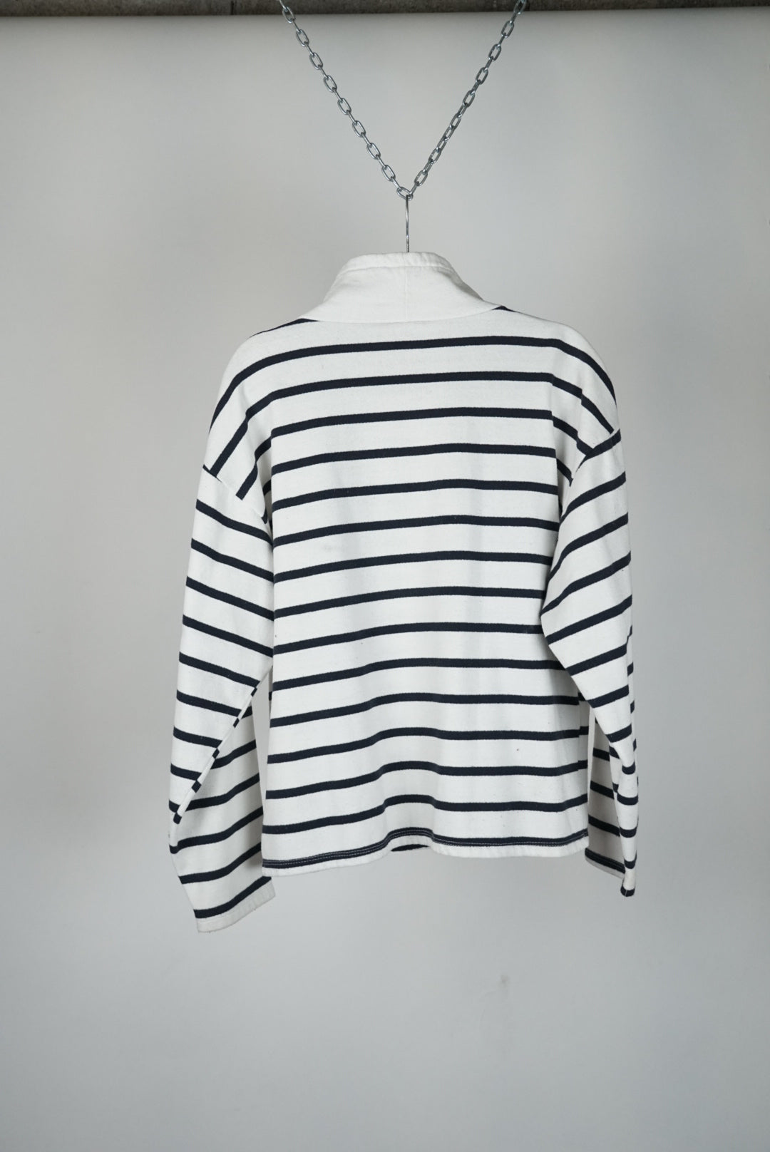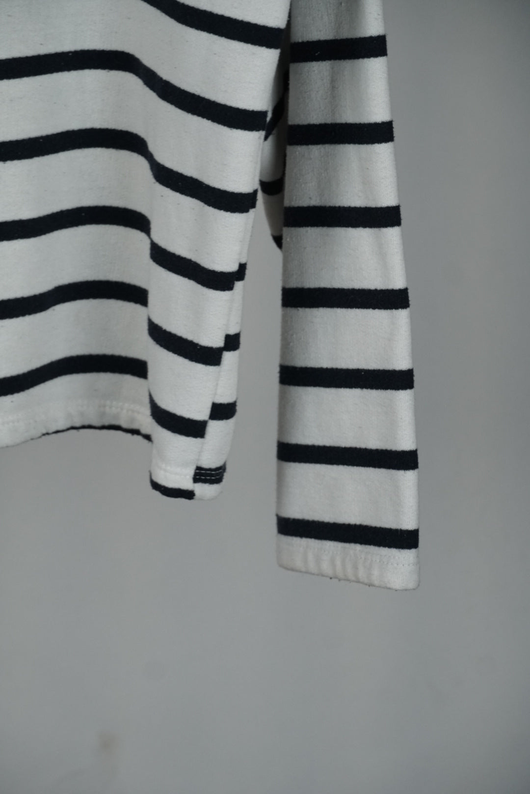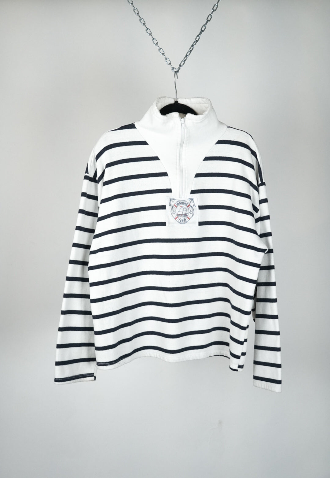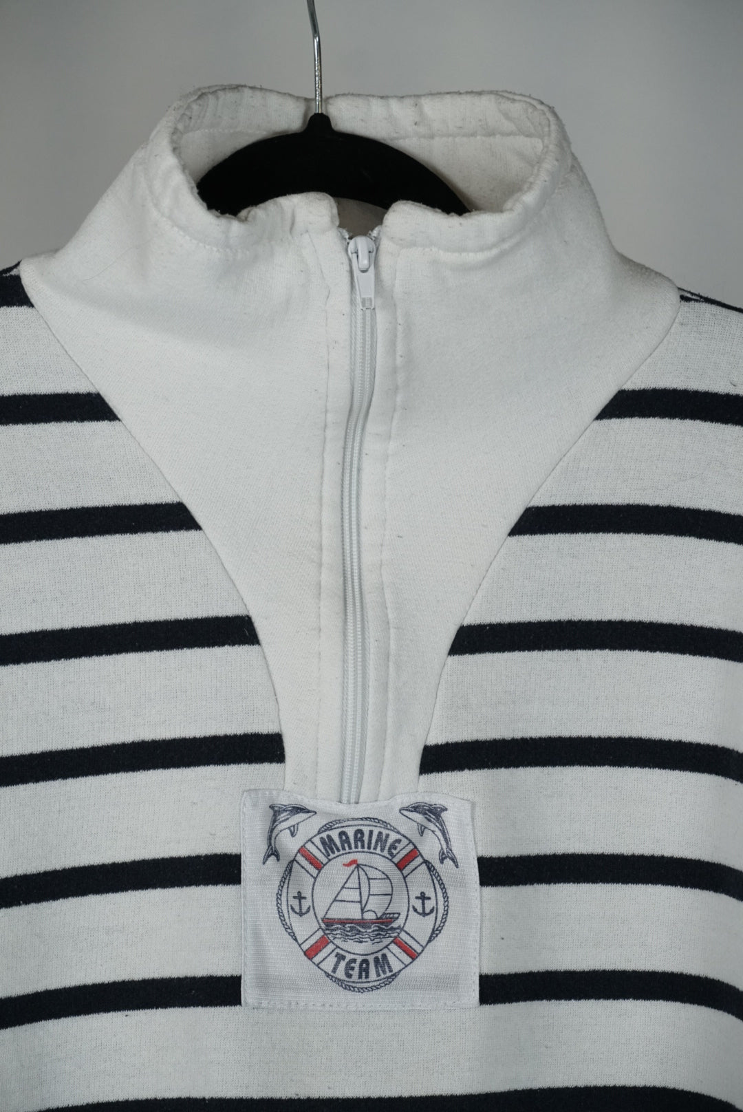 Pull marin col camioneur, coupe droite, patch marin cousue milieu bas du col